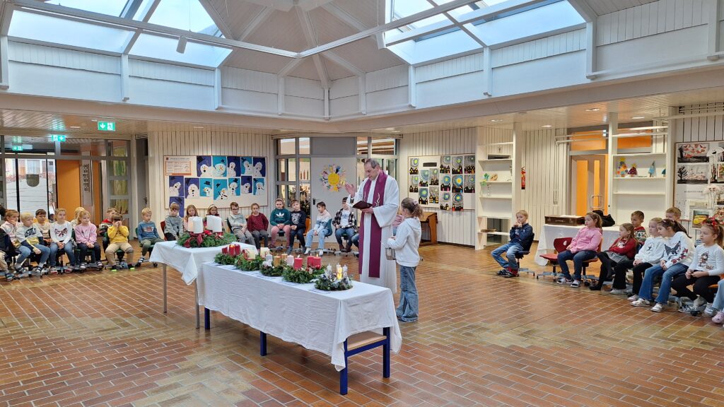 In der Volksschule wurde die alljährliche Adventkranzsegnung gefeiert, die von Religionslehrerin Frau Sabine Pöschl feierlich vorbereitet wurde. In einer ruhigen und stimmungsvollen Atmosphäre erhielten die Adventkränze der einzelnen Klassen von Herrn Pfarrer Mag. Wolfgang Pristavec ihren Segen. Die Feier weckte die Vorfreude auf Weihnachten stimmte alle auf die Zeit vor Weihnachten ein.